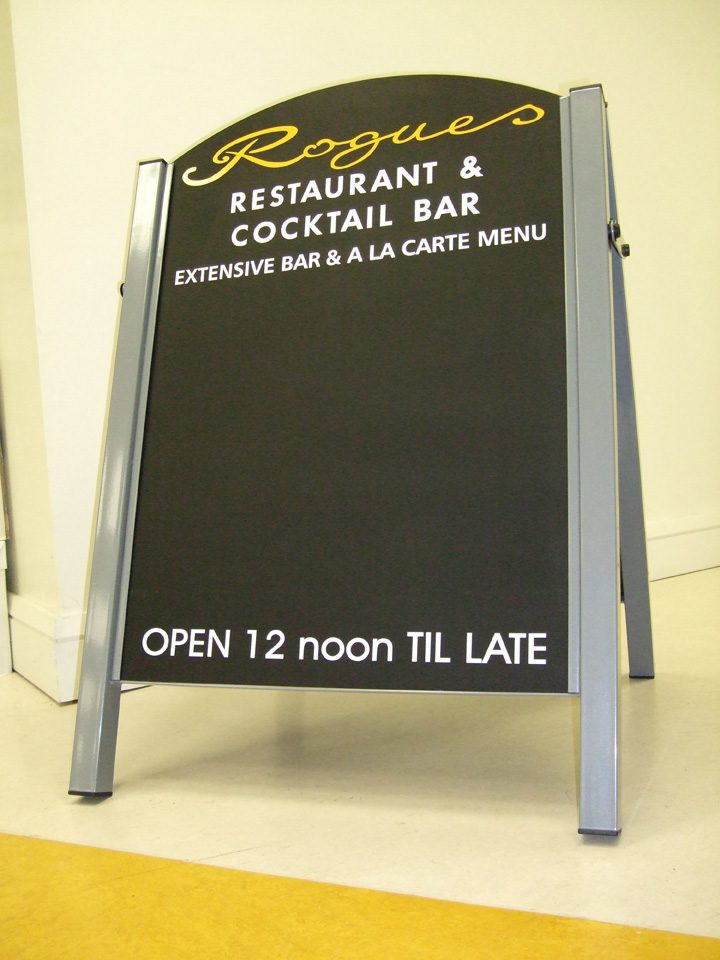 We offer a wide range of A-board / Pavement Sign styles and formats to suit any design and location. A-boards are a very economical method for attracting the attention of passing pedestrians and traffic.