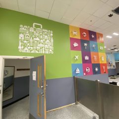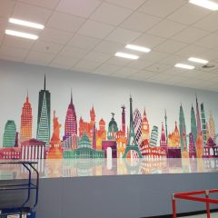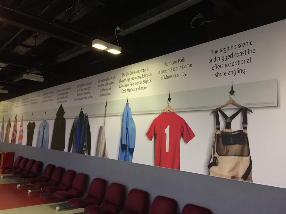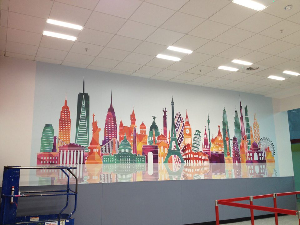 Using the latest technology, we can incorporate your logo and colours into wall graphics that match your message and brand identity to the surrounding environment. Wall graphics can be a great solution for large wall areas in a public space by transforming it into one continuous display.