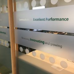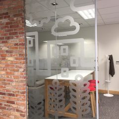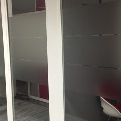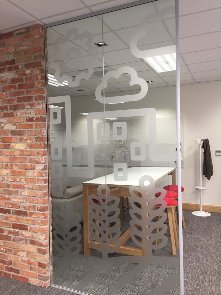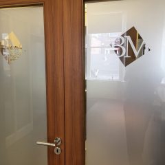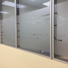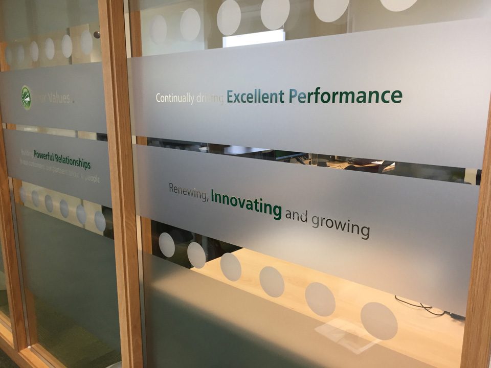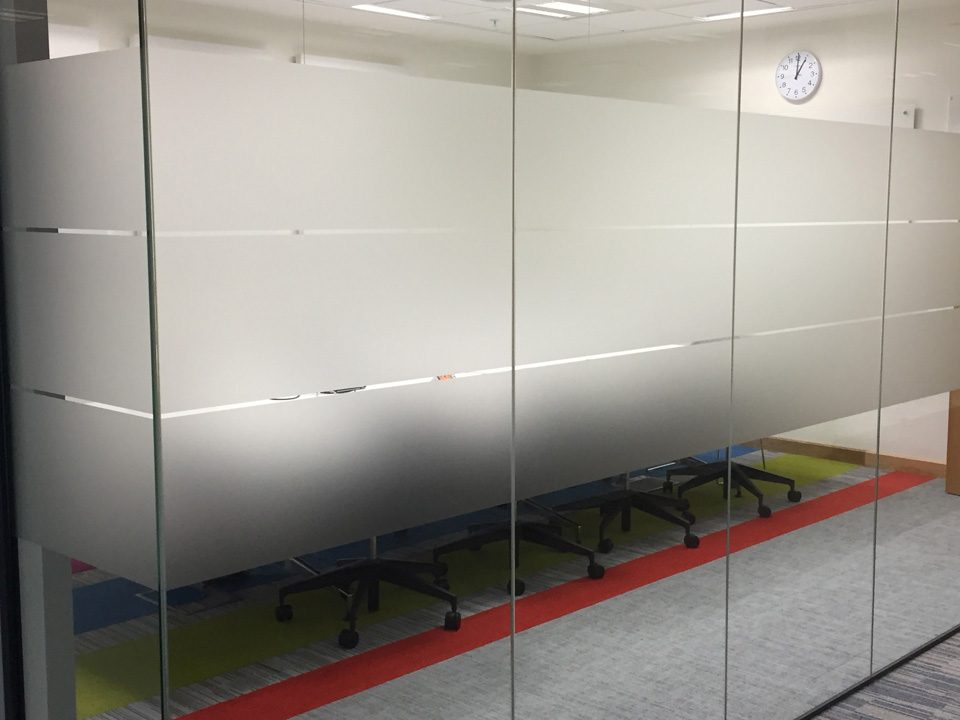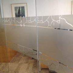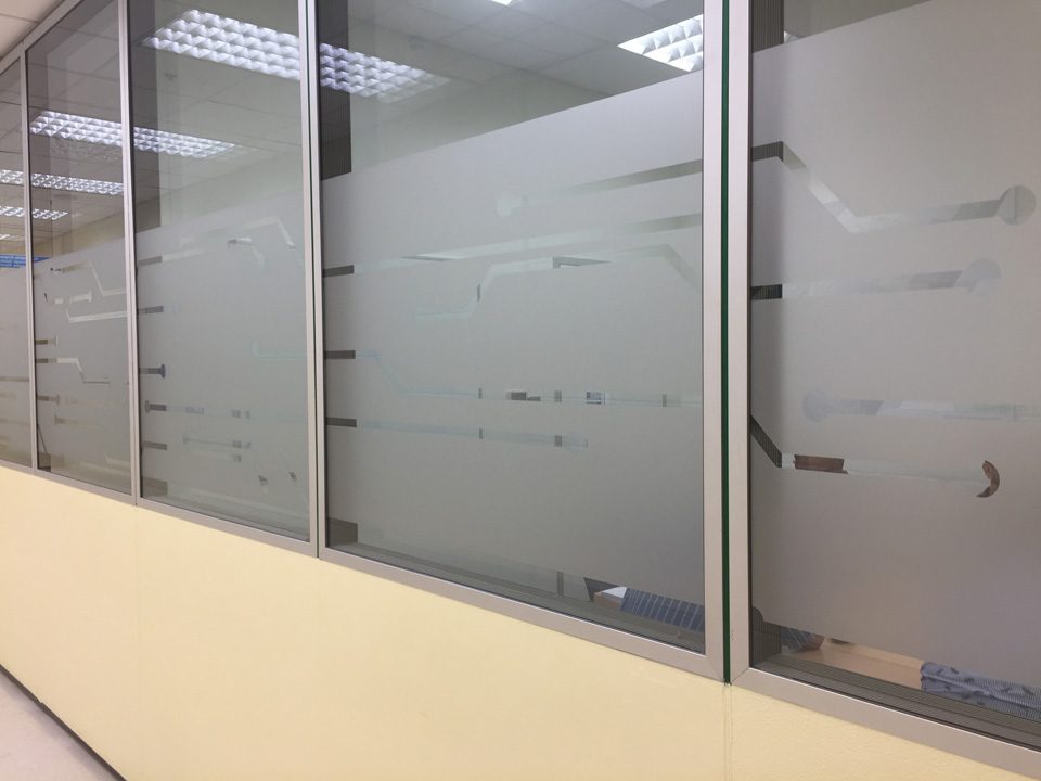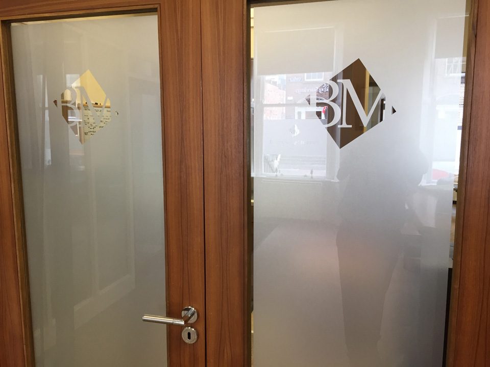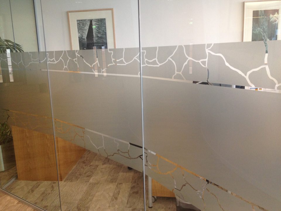 The effect of etched or frosted glass can be created for a fraction of the cost by using the latest advanced films. It can help soften wide expanses of glass whilst providing greater privacy for staff or customers.
