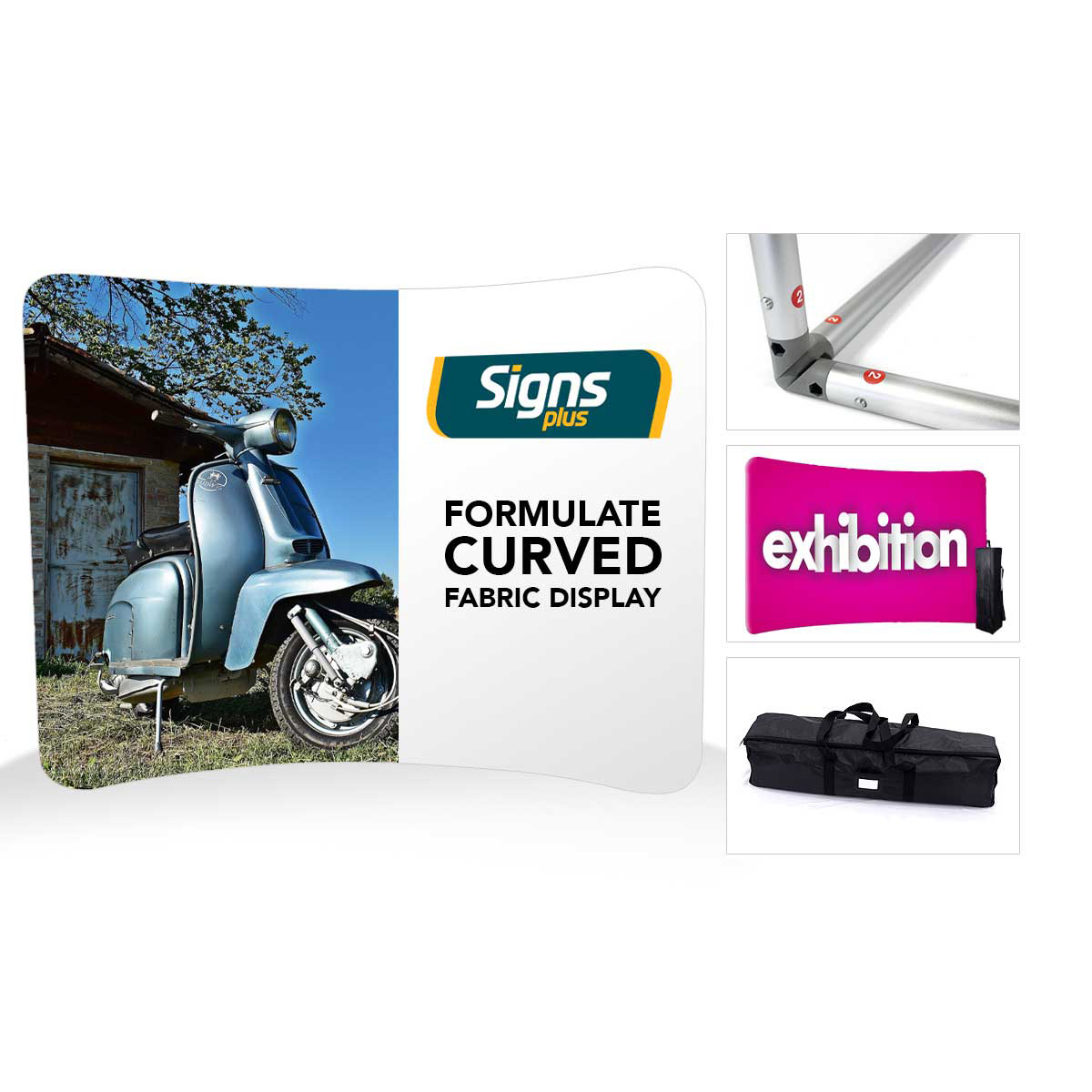 – freestanding aluminium frame with textile fabric graphic